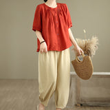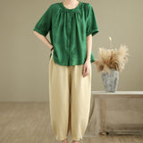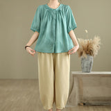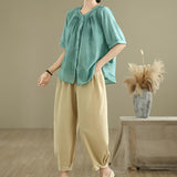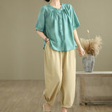 Buddha Stones 2pcs Casual Women's Short Sleeve Shirt Harem Pants Meditation Clothing Set