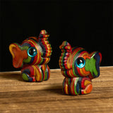 Buddha Stones 2Pcs Mini Rainbow Eucalyptus Elephant Carved Strength Decoration