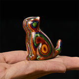Buddha Stones 2Pcs Mini Rainbow Eucalyptus Sitting Cat Carved Reduce Stress Decoration