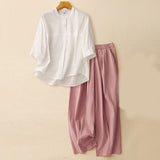 Buddha Stones 2pcs Women's Three-quarter Sleeve Shirt Harem Pants Meditation Clothing Set