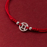 Buddha Stones 925 Sterling Silver Hollow Copper Coin Luck String Bracelet