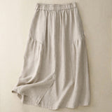 Buddha Stones A-line Buttons Slit Design Elastic Waist Cotton Women's Skirt With Pockets