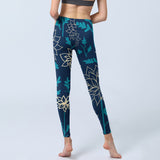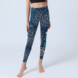 Buddha Stones Beige Flowers Blue Leaves Print Gym Leggings Women's Yoga Pants
