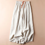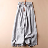 Buddha Stones Casual Cotton Slit Hem Women's 7-8 Length Wide Leg Pants With Pockets
