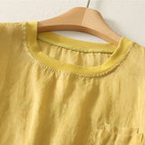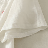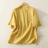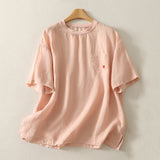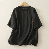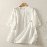 Buddha Stones Casual Embroidery Red Heart Short Sleeve Women's Cotton Linen T-Shirt