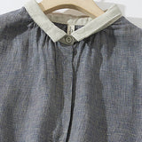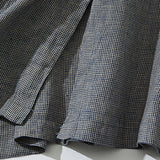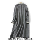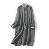 Buddha Stones Commute Retro DimGray Plaid Lantern Sleeve Cotton Linen Midi Dress With Pockets
