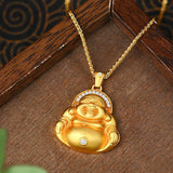 Buddha Stones Copper Laughing Buddha Pattern Happiness Necklace Pendant