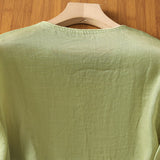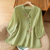 Buddha Stones Embroidered Flowers Cotton Women's V-neck Shirt