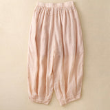 Buddha Stones Embroidered Pattern Women's Cotton Linen Harem Pants With Pockets