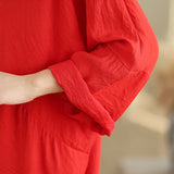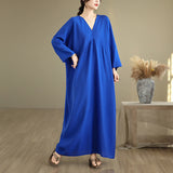 Buddha Stones Fall Casual V-Neck Long Sleeve Cotton Maxi Dress