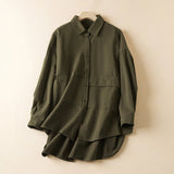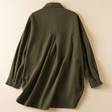 Buddha Stones Fall Irregular Design Long Sleeve Women's Cotton Linen Lapel Jacket With Pockets