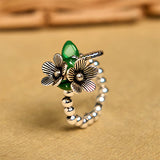Buddha Stones Flower Pattern Copper Alloy Luck Elastic Rope Ring