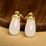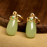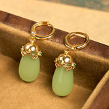 Buddha Stones Green Chalcedony Water Drop Strength Copper Posts Earrings