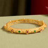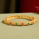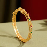 Buddha Stones Hollow Design Copper Plated Gold Flower Luck Bracelet Bangle
