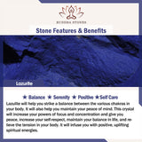 Lazulite will help you strike a balance between the various chakras in your body. It will also help you maintain your peace of mind. This crystal will increase your powers of focus and concentration and give you peace, increase your self-respect, maintain your balance in life, and relieve the tension in your body. It will infuse you with positive, uplifting spiritual energies.