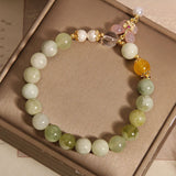 Buddha Stones Natural Butterfly Serpentine Jade Yanyuan Agate Luck Bracelet