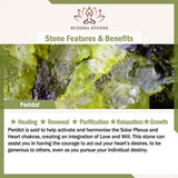 Peridot is said to help activate and harmonise the Solar Plexus and Heart chakras, creating an integration of Love and Will. This stone can assist you in having the courage to act out your heart’s desires, to be generous to others, even as you pursue your individual destiny.