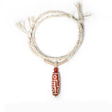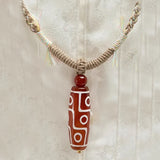 Dzi bead (Tib. གཟི།; pronounced "zee"; alternative spelling: gzi) is a type of stone bead of uncertain origin worn as part of a necklace and sometimes as a bracelet. Dzi beads are precious jewelry from Tibetan culture which is generally prized as protective amulets,these beads are believed to attract local protectors, dharmapalas or deities or maybe beneficial ghosts, ancestors or even bodhisattvas. Because of this, dzi beads are always treated with respect in Tibetan culture. Nine-Eye Dzi Bead is the symbol of The Nine Planets, It includes the activity of the Universe and the wisdom of the humanity. Nine-eyed beads is the most popular of all Dzis, brings all kinds of luck and blessings; protection, good health, purify negative energy expand intelligence and wisdom.It helps the investors with the successful development of new ideas in rolling in wealth.