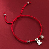 Buddha Stones Retro 925 Sterling Silver Four Leaf Clover Pearl Luck Red String Bracelet