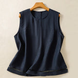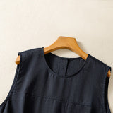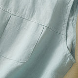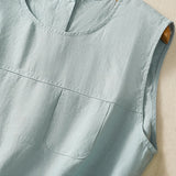 Buddha Stones Simple Crew Neck Button Design Women's Cotton Sleeveless Vest