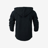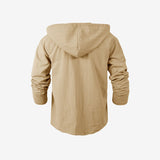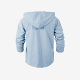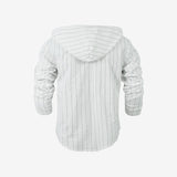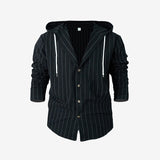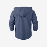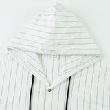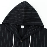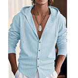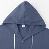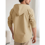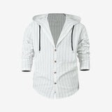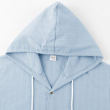 Buddha Stones Solid Long Sleeve Hooded Stripes Drawstring Buttons Linen Men's Shirt