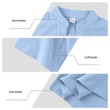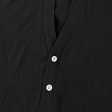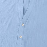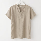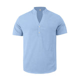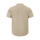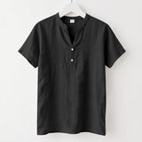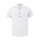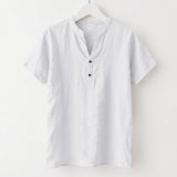 Buddha Stones Solid Summer Short Sleeve Half Buttons Linen Men's Shirt