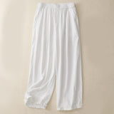 Buddha Stones Summer Button Ruffled Ankle-Length Women's Pants With Pockets