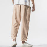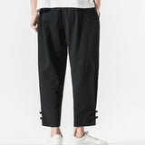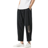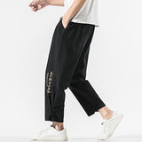 Buddha Stones Summer Chinese Characters Embroidery Men's Cotton Linen Pants With Pockets