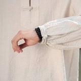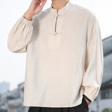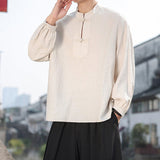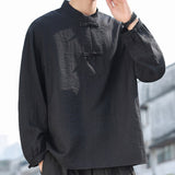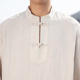 Buddha Stones Two Frog-Button Stand Collar Long Sleeve Men's Cotton Shirt