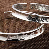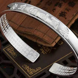 Forged from ​sterling silver and resilient white copper alloy, this cuff balances elegance with strength. Its 8mm width offers subtle boldness, while the adjustable length (15-20cm) ensures a ​perfect fit for all wrists. The unisex design merges minimalist sophistication with spiritual depth, pairing effortlessly with meditation robes, office attire, or casual wear. More than jewelry—it’s a ​timeless heirloom blending artistry with intention.