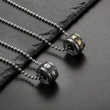 Embody the essence of Buddhist wisdom with the Om Mani Padme Hum mantra, engraved meticulously on this titanium steel pendant. Each syllable purifies toxic traits: