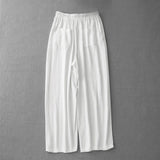 Buddha Stones Casual Pure Color Drawstring Simple Design Women's Cotton Pants With Pockets