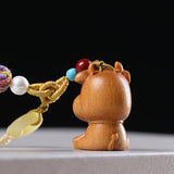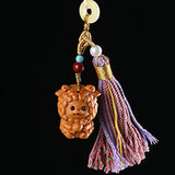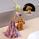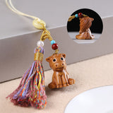 Buddha Stones Sandalwood 12 Chinese Zodiac Blessing Colorful Tassel Accessories Keychain