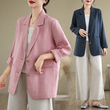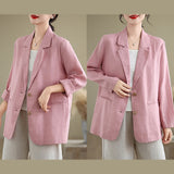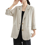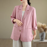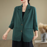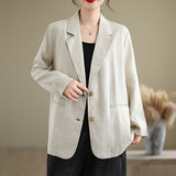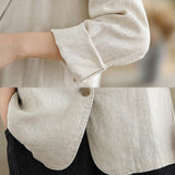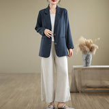 Buddha Stones Spring Casual Solid Color Long Sleeve Cotton Linen Women's Jacket With Pockets