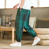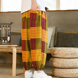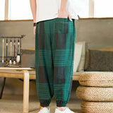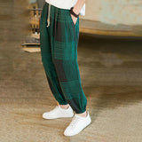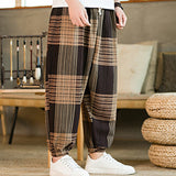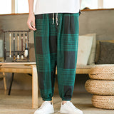 Buddha Stones Summer Checkered Stripes Cotton Linen Men's Harem Pants With Pockets