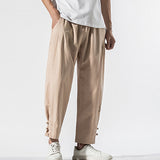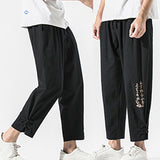 Buddha Stones Summer Chinese Characters Embroidery Men's Cotton Linen Pants With Pockets