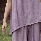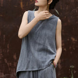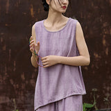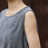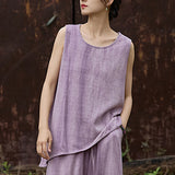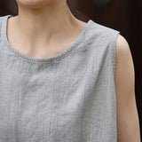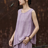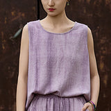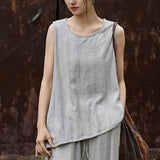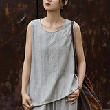 Buddha Stones Summer Tie-dye Linen Crew Neck Sleeveless Women's Vest